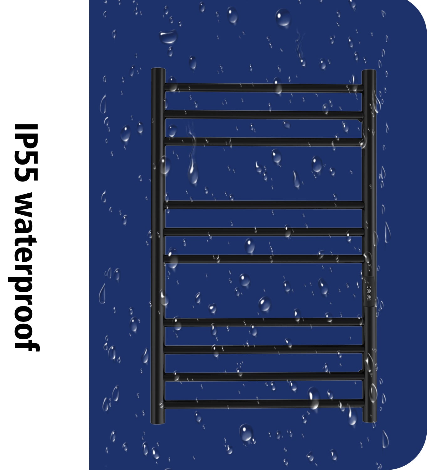 Enjoy warm towels, dry garments, and a more inviting bathroom—this matte black 10-bar towel warmer is the perfect balance of style, comfort, and smart functionality.